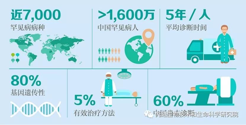 根據(jù)世界衛(wèi)生組織的定義,罕見病是指患病人數(shù)占總?cè)丝?.65%-1%之間的疾病或病變,至今全球已確認(rèn)的罕見病約有七千多種,約占人類總疾病的10%,且80%是由遺傳缺陷引起。醫(yī)學(xué)資料顯示,每人均攜帶有5-10個(gè)缺陷基因,一旦父母雙方擁有相同的缺陷基因,孩子就有可能得罕見病,也有可能病人的父母是沒有缺陷基因的,孩子的基因突變是新發(fā)生的。由于我國人口基數(shù)大,眾多的罕見疾病種類和人群將成為影響我國人口健康發(fā)展的重要因素,因此罕見病的預(yù)防、診斷和治療必將成為我國衛(wèi)生醫(yī)療所面臨的不可避免的挑戰(zhàn)[1]。