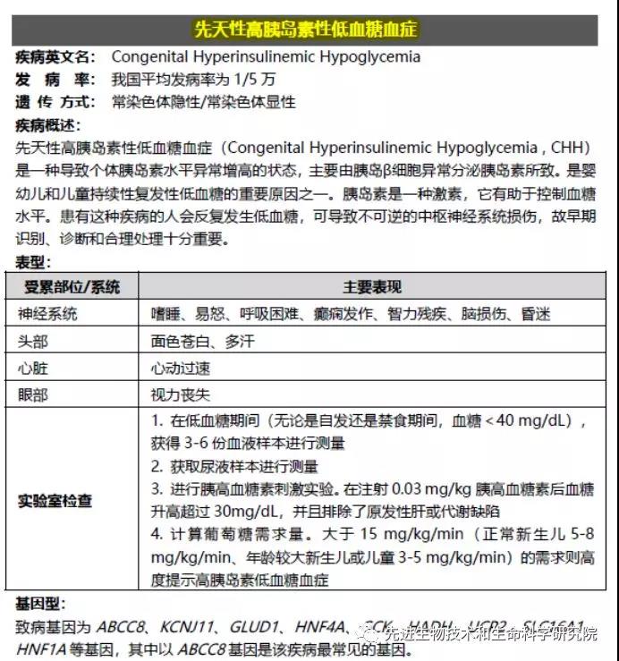 先天性高胰島素血癥(congenital hyperinsulinism,CHI)主要是由編碼胰島beta細(xì)胞功能的基因突變引起的疾病,也稱為嬰兒持續(xù)性高胰島素血癥性低血糖癥。先天性高胰島素血癥難以治愈,很容易引起年幼嬰兒低血糖癥,其特點(diǎn)是頑固的低血糖及與血糖水平不相稱的相對(duì)高胰島素血癥同時(shí)伴有低酮體低脂血癥,年齡越小低血糖的危害越大,特別是低血糖造成的腦功能損害。