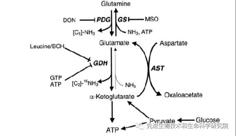 谷氨酰胺-谷氨酸-α-酮戊二酸的關(guān)鍵酶的調(diào)控(Li et al., 2006)
